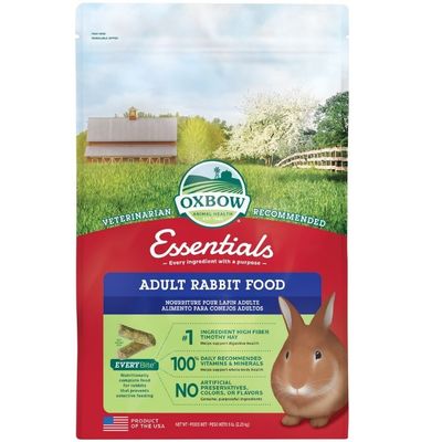 Essentials Adult Rabbit Food combines all-important fibre with stabilised nutrients to assure a well-balanced diet when served with Oxbow's loose grass hays. Oxbow Animal Health’s founder and owner, John Miller, created the industry’s first timothy hay-based food for rabbits and other small herbivores, the basis of Essentials - Adult Rabbit Food. Size: 2.25kg bag