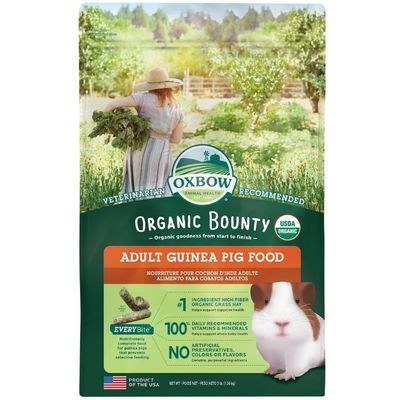 A new, USDA certified organic Oxbow pellet option is now available. When fed in a measured dose in conjunction with unlimited grass hay, Oxbow’s Organic Bounty Adult Guinea Pig Food models the complete nutrition a guinea pig would find in its natural environment. Oxbow begins with hand-selected organic grass hay to promote effective digestion and add wholesome, organic ingredients and vital nutrients to nourish your small pet the way nature intended. 8 x 1.3kg bags.