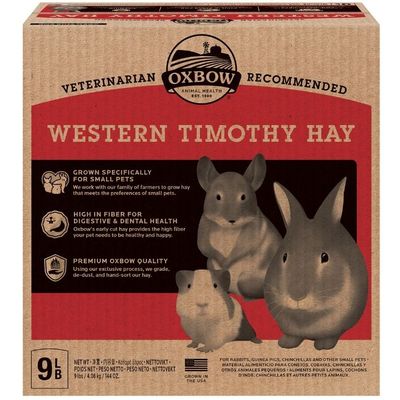 Now also hand-sorted in this large size! Oxbow’s all-natural Western Timothy Hay is a nutritious, sweet-smelling grass that will stimulate your pet’s appetite and encourage consumption. Western Timothy Hay is the hay most recommended by veterinarians. Size: 4kg bag (inside box)