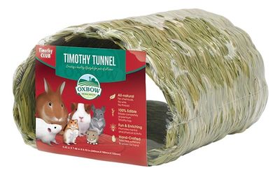 100% all-natural Timothy Club Tunnels are hand-woven to perfection. Oversized, all-grass construction offers a place to rest and relax inside or outside the cage. Open construction encourages your pet's natural movements and curiosity. Edible construction offers your small pet the high fibre he needs and craves. Contains no chemicals, wire, or thread for your small pet to ingest. Size: 250 x 190 x 180 mm.