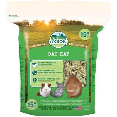 Oxbow’s hearty, hand-selected Oat Hay is harvested before the oat develops into a seed, Oat Hay meets the nutritional needs of herbivores with high fibre and low protein. This appealing alternative contains savoury husks full of flavour and fibre. Its aroma will stimulate your pet’s appetite and encourage consumption. Your pet should have unlimited grass hay every day. Size: 425g bag